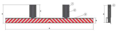 Parachoque PBT até 10.000Kg Código Dimensões (mm) Peça Descrição Qnt. PR017 A Largura Lâmina 2.100 1 Suporte Fixo 2 peças PR028 B Altura Lâmina 120 2 Suporte Móvel 2 peças PR029 C Altura Suporte Fixo 300 3 Lâmina 1 peça PR030 D Altura Suporte Médio 400 4 Parafuso 3/4"x5” (c/ porca trav.) 2 peças PR031 E Altura Total do Conjunto 436/576 5 Mola 300 mm 2 peças